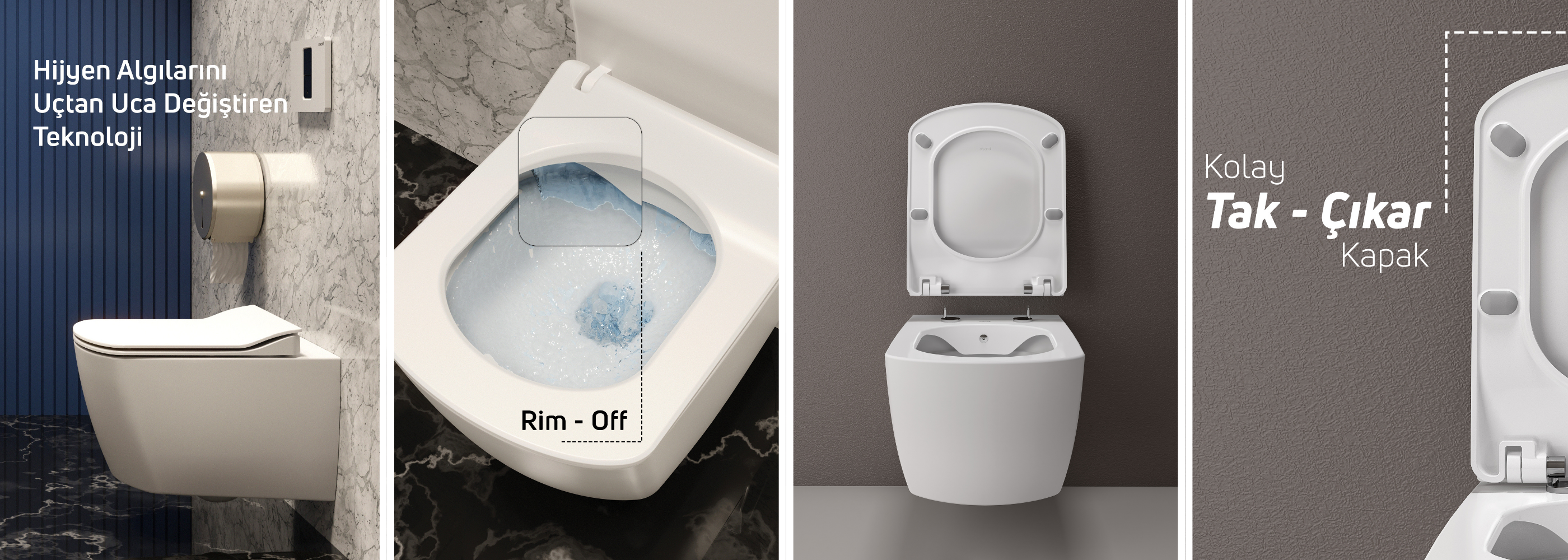 Rim-Off kanalsız yapısı sayesinde banyoda temizliği kolaylaştırırken bakteri barınımını engelleyerek sağlıklı bir deneyim sunar.