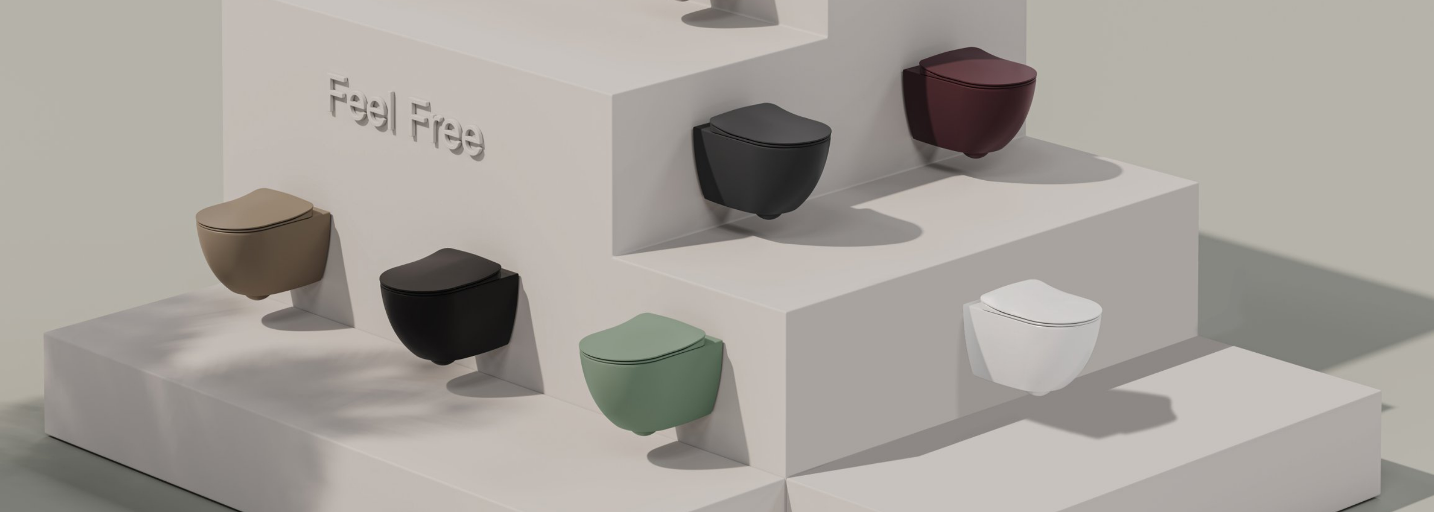 Model alternatifleriyle dikkat çeken Free Serisi asma, duvara dayalı ve kanalsız tip klozet seçenekleri ile farklı banyo ölçülerine mükemmel uyum sağlar.